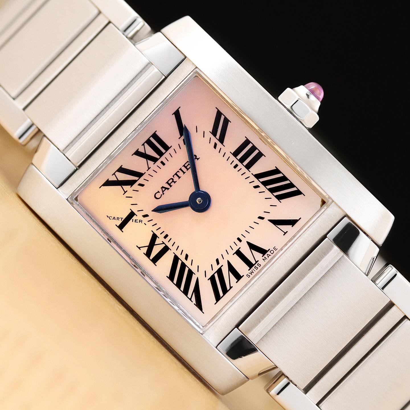 CARTIER LADIES TANK FRANCAISE W51028Q3 PINK MOTHER OF PEARL ROMAN STEEL WATCH