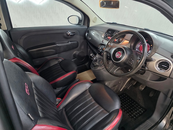 this Fiat 500 is a stylish and characterful hatchback, perfect for city driving and everyday use. Sitting on 16-inch alloy wheels, complemented by chrome exterior detailing and finished in Electroclash Grey, it has a distinctive and eye-catching look that stands out on the road. Inside, the cabin is full of personality with black and red leather seats, a leather multifunction steering wheel and a 7-inch TFT colour display, giving it a modern yet fun feel. The Blue&Me system with Bluetooth, USB connectivity and MP3 player keeps you connected, while automatic climate control ensures a comfortable drive all year round. On the road, it’s light, easy to drive and economical, with Dualdrive power steering and hill holder assist making city driving effortless. Safety is well covered too, with ESP stability control, multiple airbags, brake assist and rear parking sensors, giving added confidence behind the wheel. A fun, stylish and economical hatchback that’s ideal for first-time drivers or anyone wanting a compact car with plenty of character.
