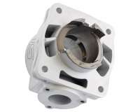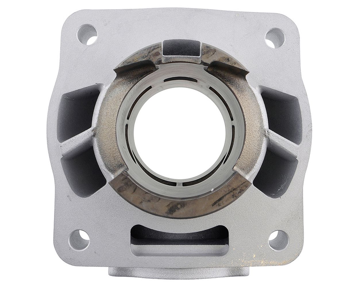 Der Aluminium-Zylinder wurde speziell für Flange Mount Motorgehäuse wie z.B. das Malossi RC One, 2Fast oder R&D Motorgehäuse entwickelt, da bei diesen Motorgehäusen durch das wegfallen der normalen Stehbolzen der Auslass deutlich größer designt werden kann.