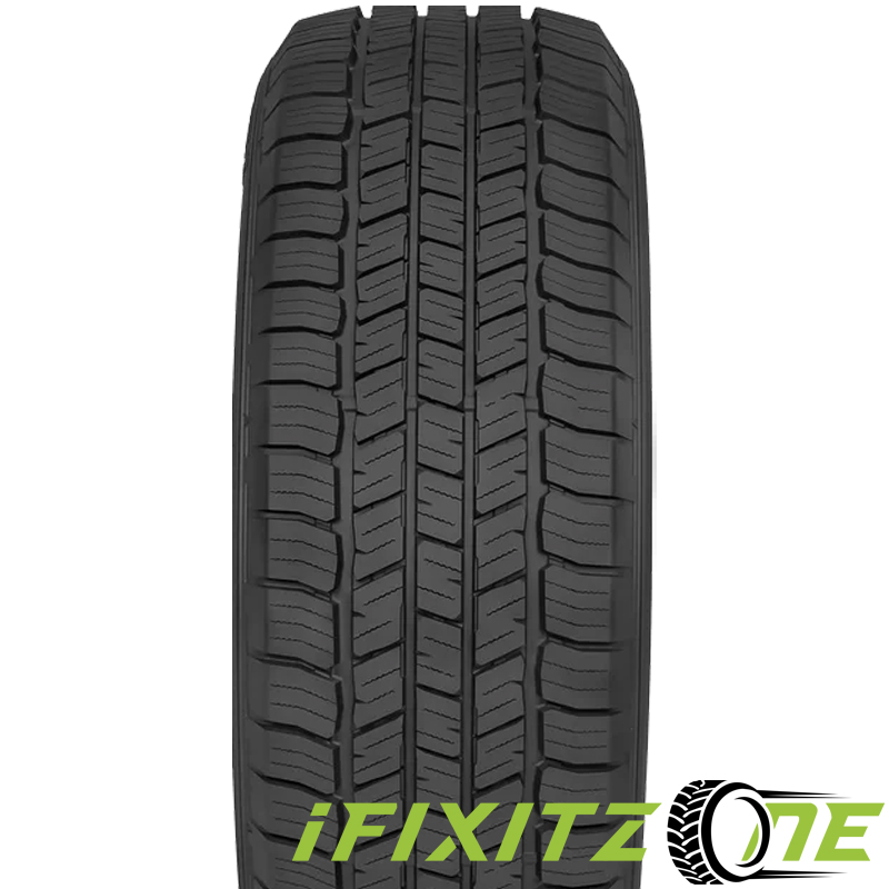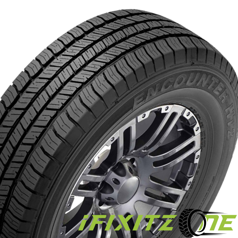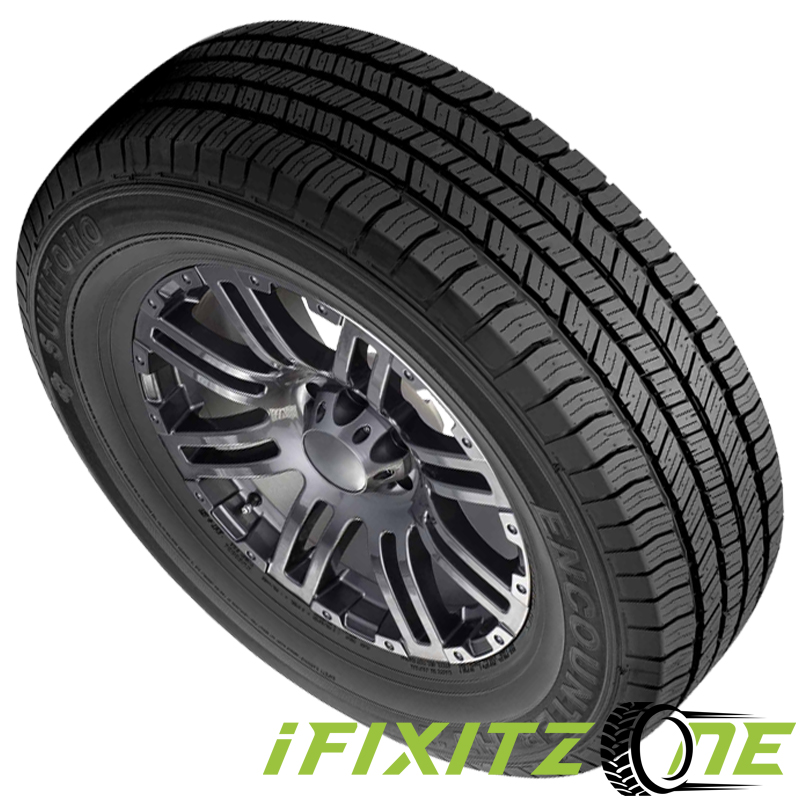 The Sumitomo Encounter HT2 is a highway all-season tire for SUVs, CUVs, and light trucks, offering reliable year-round traction, a quiet ride, and durability, featuring an optimized tread with curved shoulders for less noise, wave sipes for better wet/dry braking. Sumitomo offers a 60,000-mile treadwear warranty with this model. The Encounter HT2 features a two-ply polyester casing with a reinforced bead apex designed to increase durability and control in high-load conditions. High-strength, twin steel belts are covered by a full-width, jointless polyamide cap ply for high-speed stability. It has M+S (Mud+Snow) symbol, which means it can perform on mud and light snow surface.