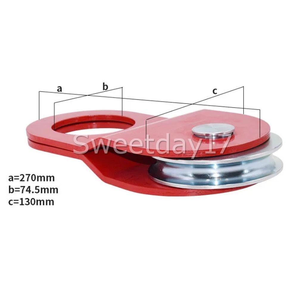Product Description Product Name: 10 Ton Red Snatch Block Work Load Limit 10 Ton rated snatch block Suitable for all winch types. Double your winch pulling capacity. Better pulling angle will help your job efficiency. 105mm diameter solid steel pulley wheel can suitable for up to 16mm cable. Grease nipple provided to lubricate the pulley.