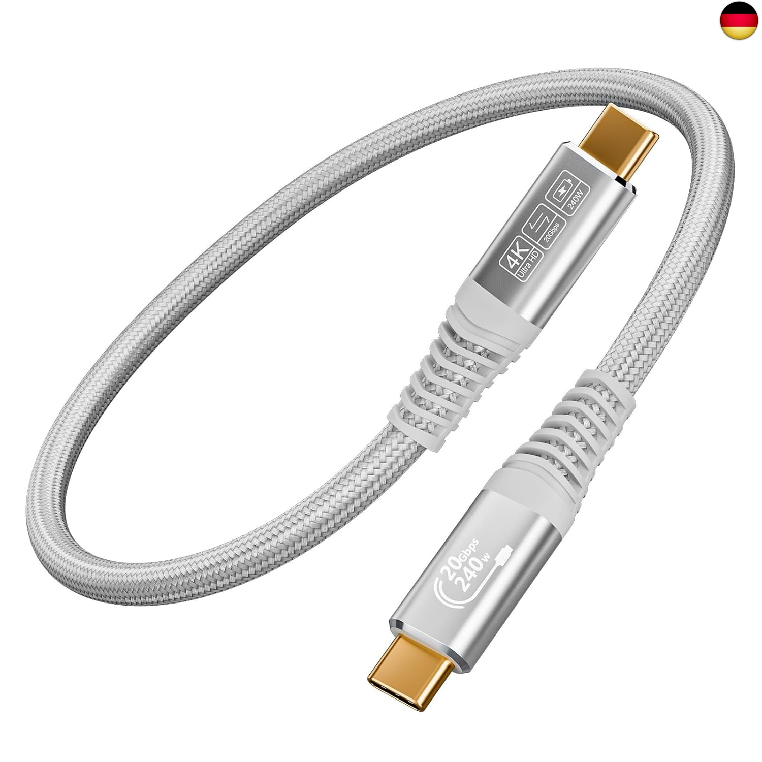 usb c auf usb c kabel 20Gbps USB C3.2 Gen2 Datenkabel, 240W Schnellladekabel, 5K60Hz 4K144Hz USBC Videoübertragung für Laptops, Mobiltelefone, Hubs, Solid State Drives, Displays Weiß (1.5m)