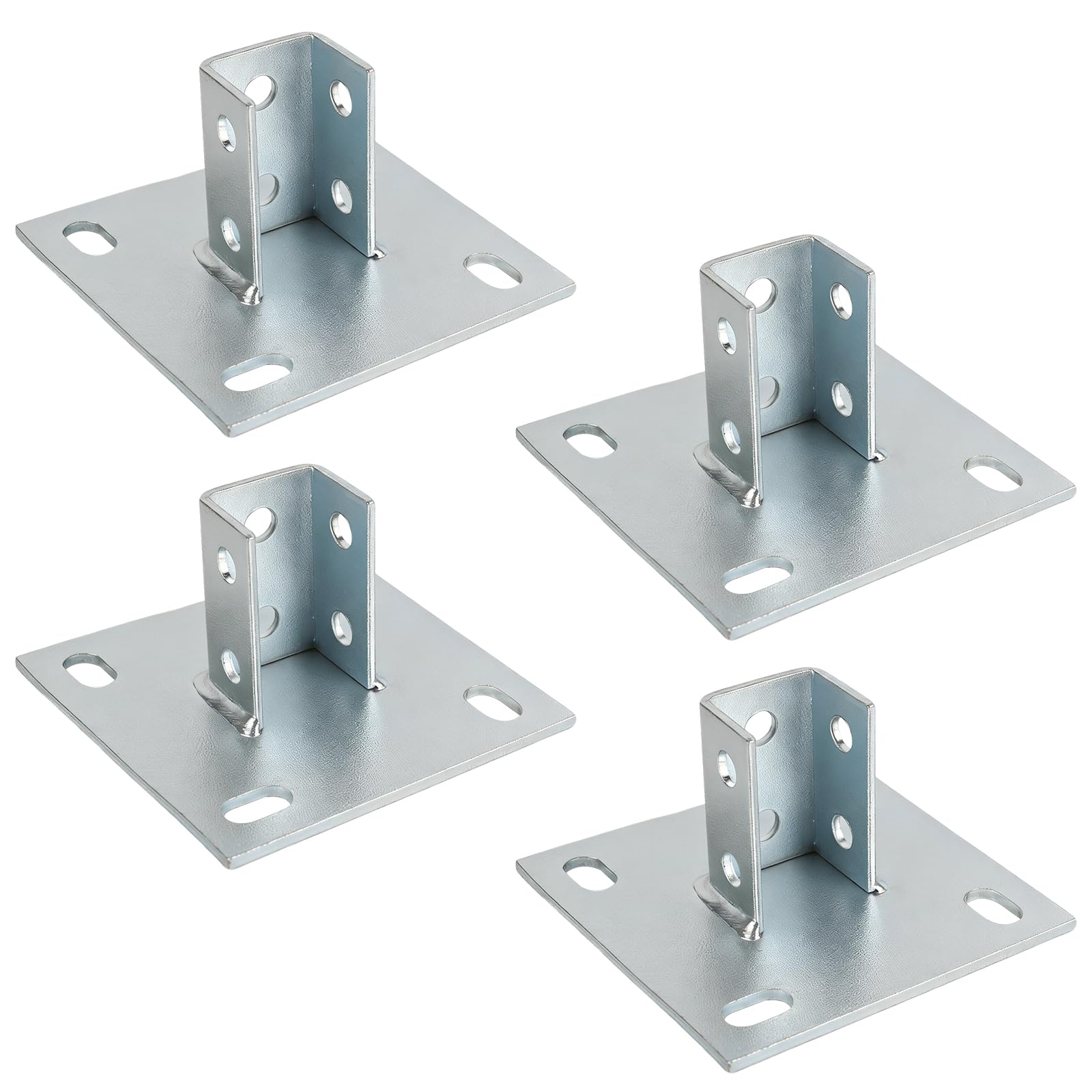 These strut post bases provide a reliable mounting solution for securing 1-5/8 inch single strut channel to ground floors and concrete surfaces. Each square base measures 6 inches by 6 inches, offering a stable footprint for vertical strut installations. The 4-pack configuration includes pre-drilled mounting holes at each corner, allowing for secure fastening with appropriate anchors or bolts. Constructed for durability, these mount brackets are designed to support the weight and stress of strut channel systems commonly used in electrical, plumbing, and HVAC applications. The square design ensures even weight distribution and prevents rotation once installed. Ideal for commercial construction, industrial facilities, and warehouse settings where strut channel framing systems need to be anchored from floor level. The standardized dimensions work seamlessly with industry-standard strut channel components, making installation straightforward for contractors and maintenance professionals.