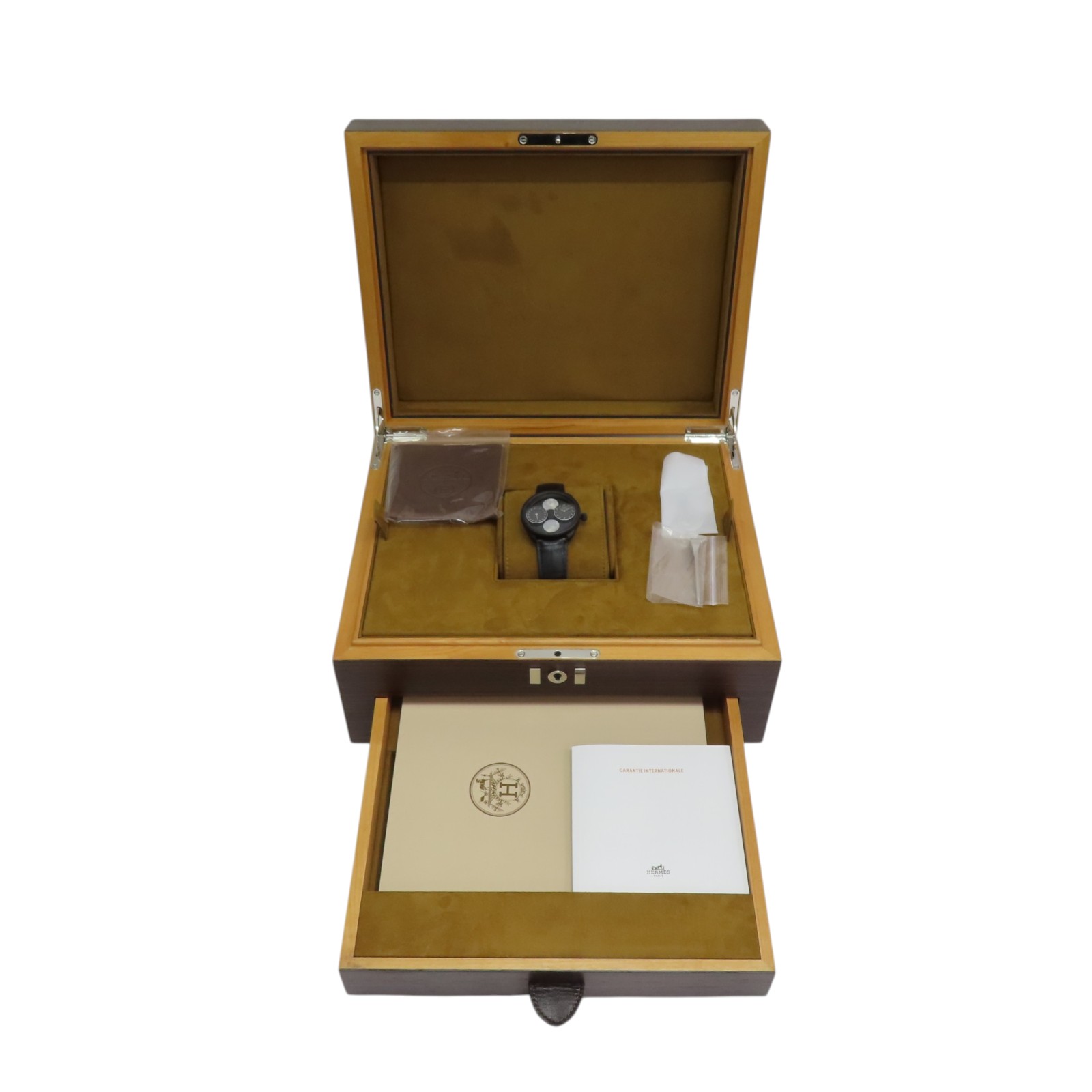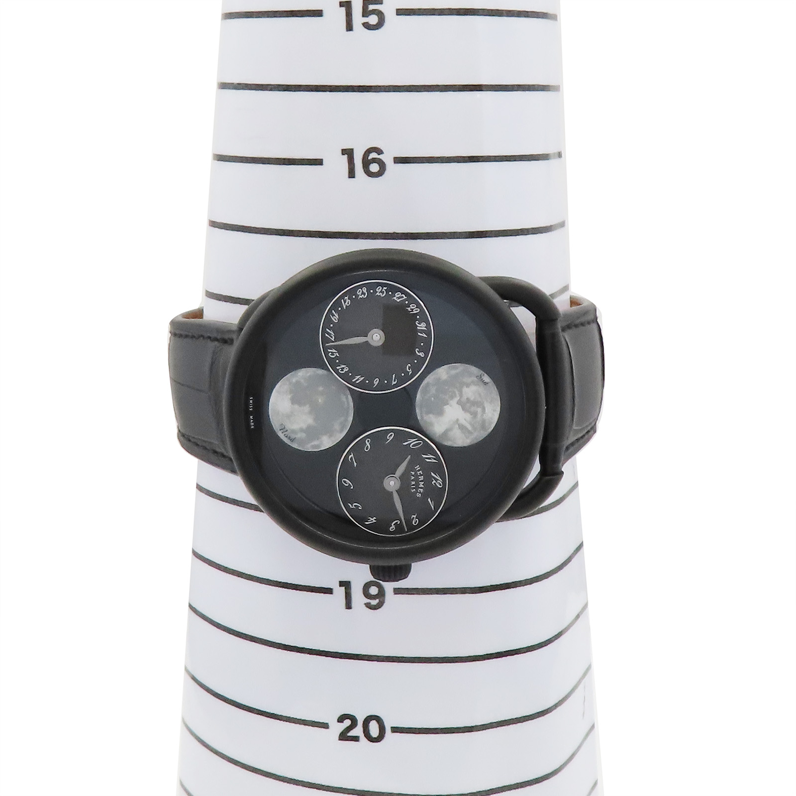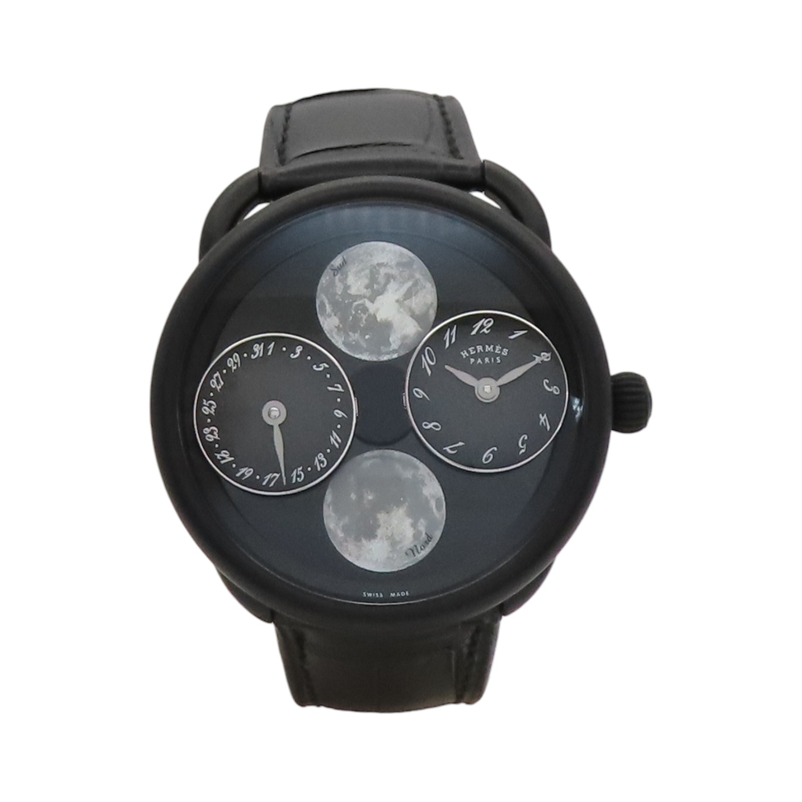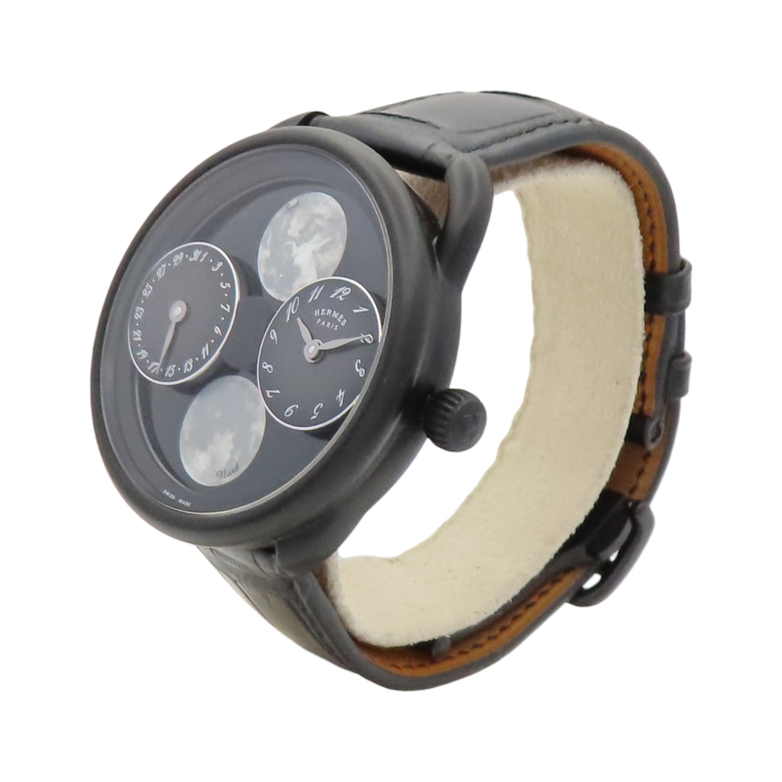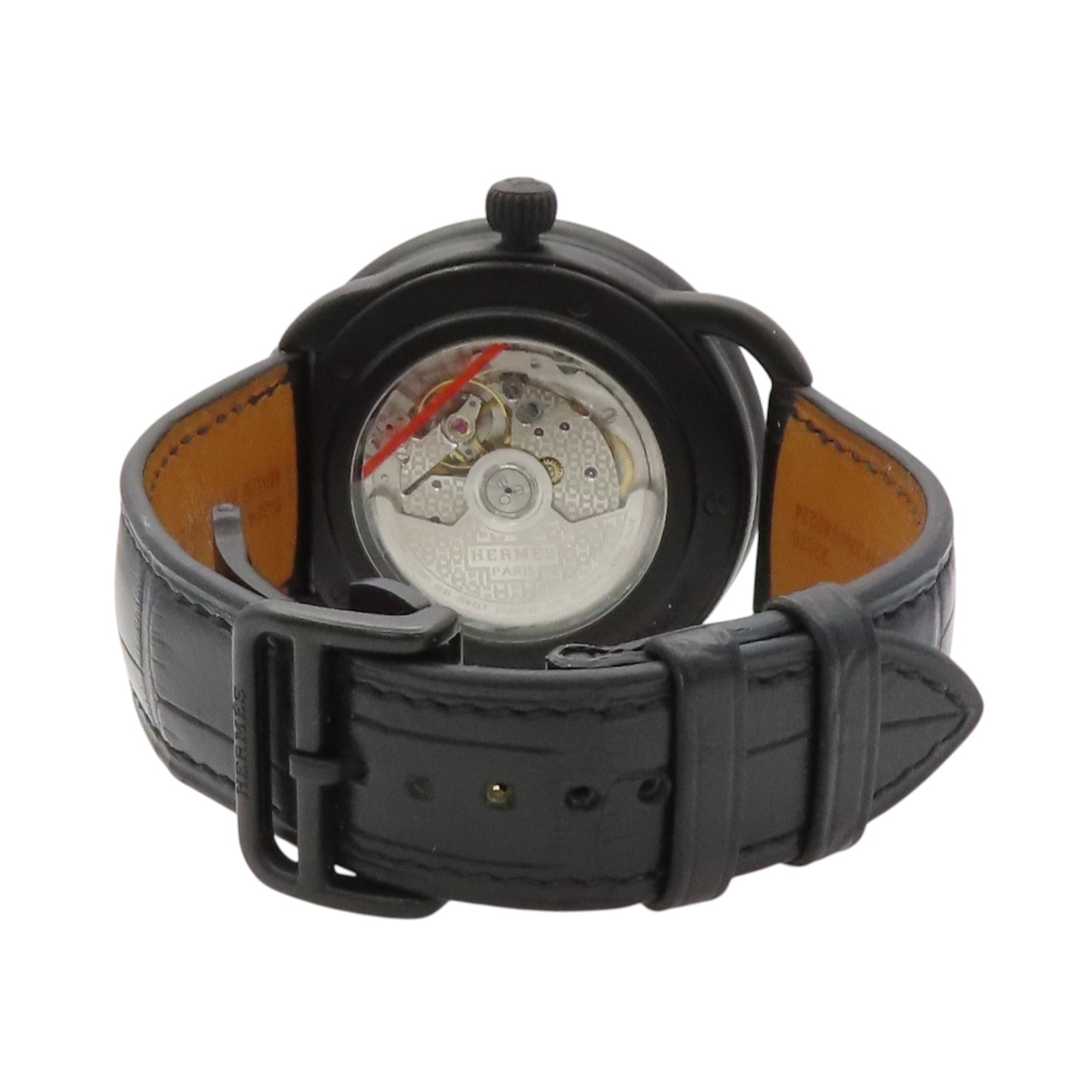 | Item Name | HERMES Arceau Automatic Watch Black Dial Titanium Black Leather Strap AR1.842 |