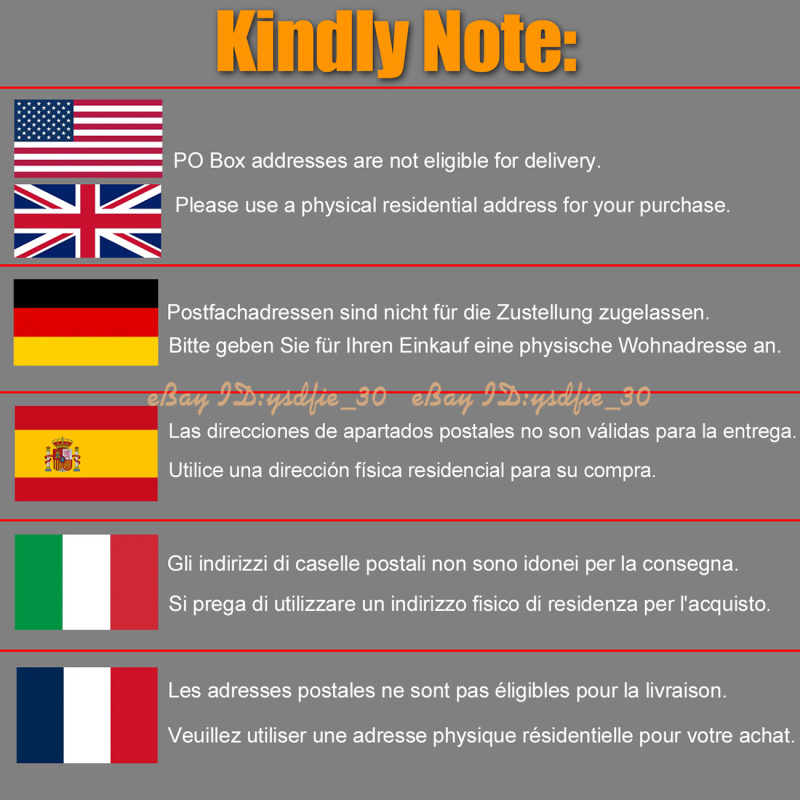 1.We accept PayPal only. Please make sure your address is the same with your registered paypal address.