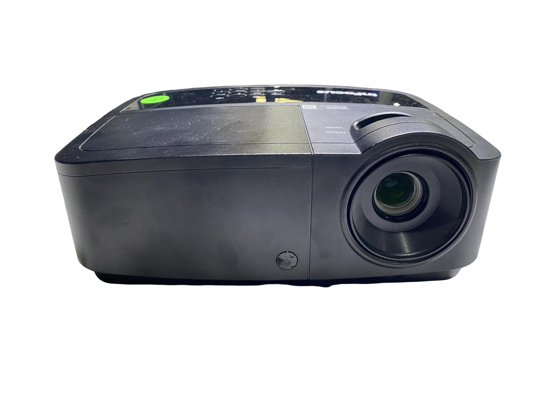 This InFocus IN114x is a high-brightness, versatile mobile projector designed for clear presentations in classrooms or brightly lit boardrooms. Featuring a native 1024x768 (XGA) resolution and a powerful 3200 lumens of brightness, it ensures that your slides remain visible even with ambient light. This unit has approximately 800 lamp hours of use, leaving a significant amount of life remaining on the bulb (rated up to 10,000 hours in Education Mode). This projector is rated as Grade C, showing visible sticker residue, scuffs, and cosmetic wear on the black plastic casing, but it remains 100% functional.