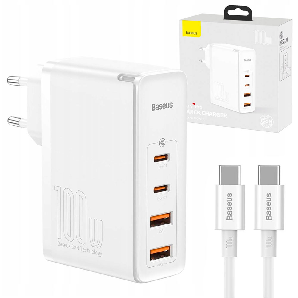 Erleben Sie die Baseus GaN2 Pro Netzladegerät mit einer herausragenden Leistung von 100 W und überzeugen Sie sich von der fortschrittlichen Schnellladetechnologie. Ausgestattet mit 2 USB-C-Anschlüssen und 2 USB-Ports, bietet dieses Ladegerät universelle Kompatibilität für all Ihre Geräte. Dank der innovativen GaN-Technologie, d.h. Galliumnitrid anstelle von Silizium, ist es schneller, kleiner und energiesparender als herkömmliche Ladegeräte.