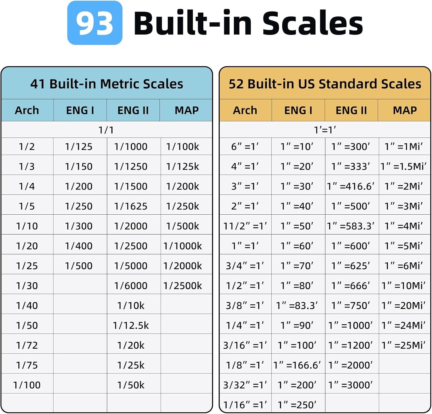Maximum versatility with 93 scales supporting various units perfect for professionals and creatives.