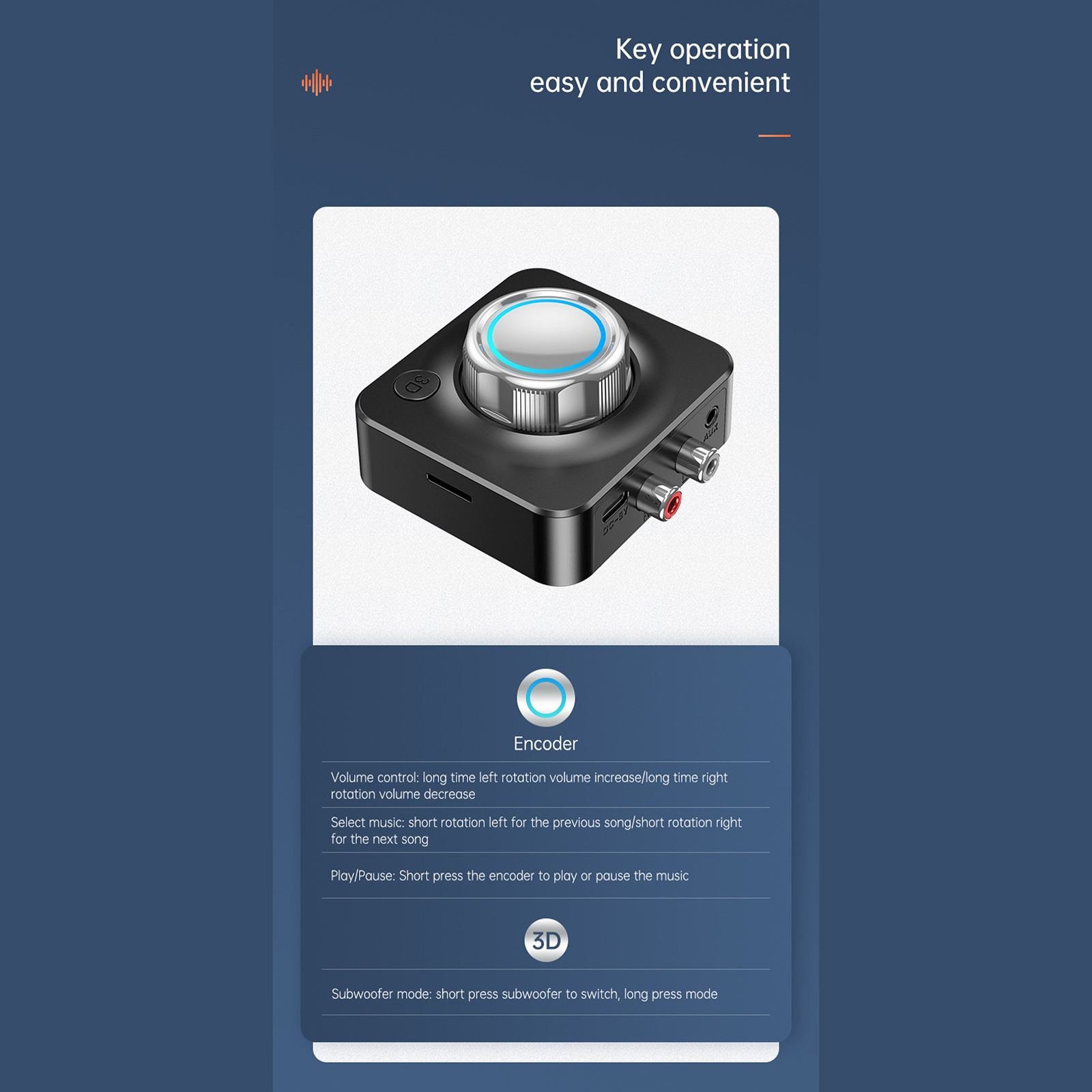 Play mode conversion: Bluetooth mode and TF mode can be converted by long pressing the 3D button (after switching the Bluetooth mode, short pressing the knob button to play mobile phone songs)