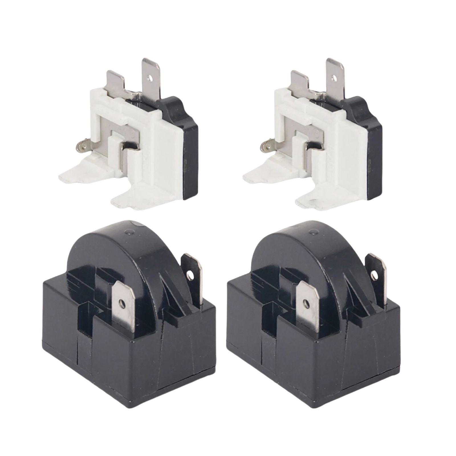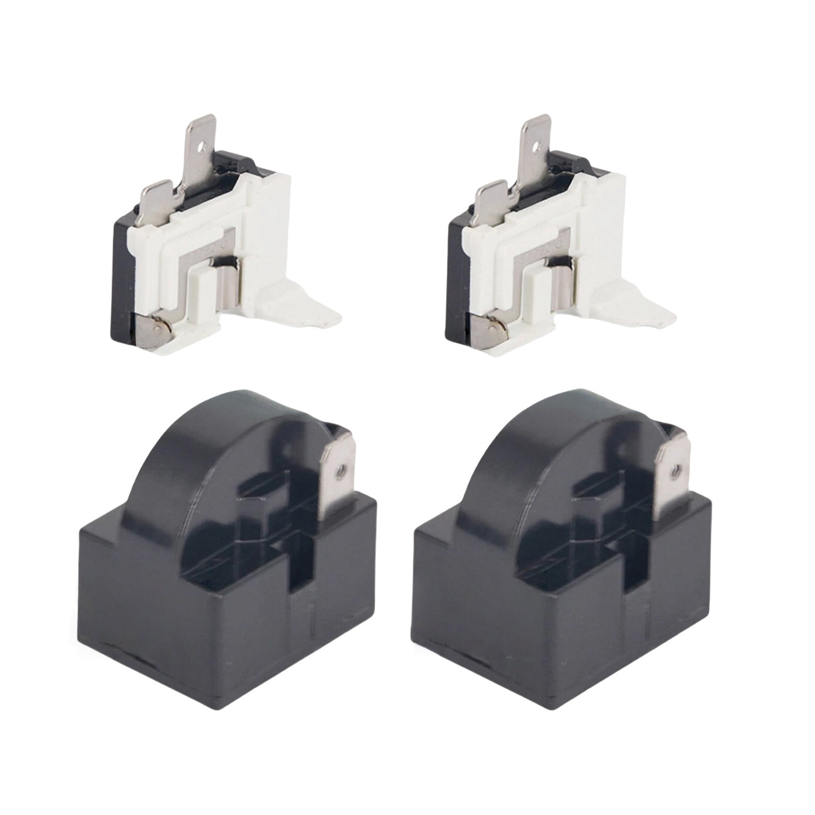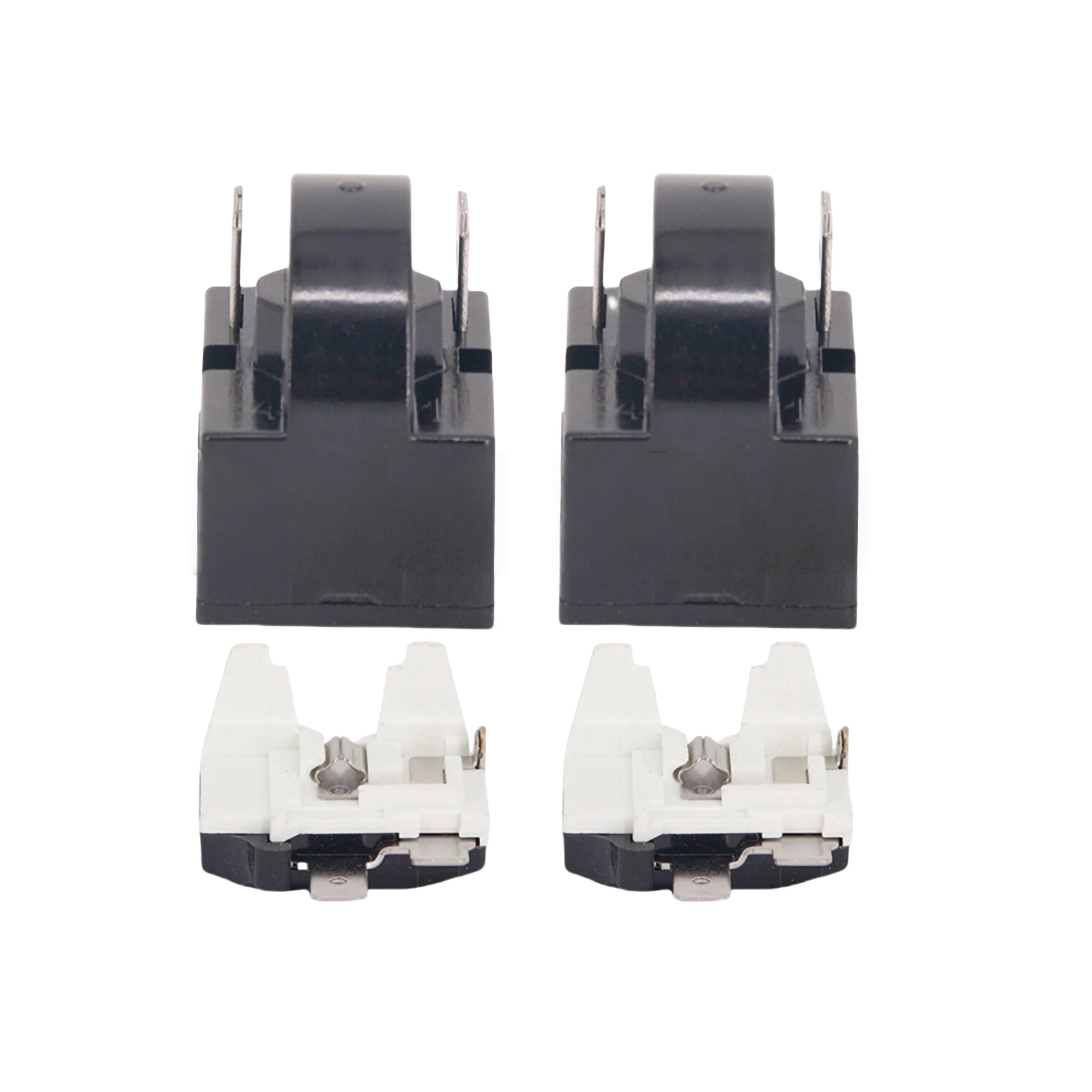 Specifications: Condition: 100% brand new and high quality Color: Black, White Quantity: 4pcs Starter Relay: Resistance: 15 ohm Pin Number: 2 Overload Protector: For: 1/4HP Refrigerator Compatible Power: 375W
