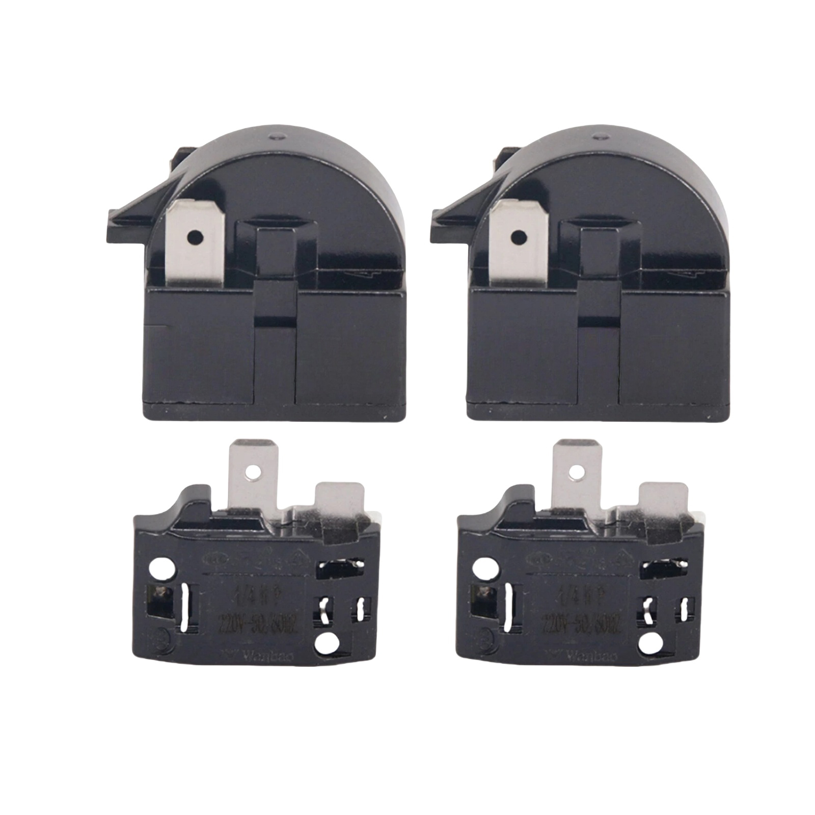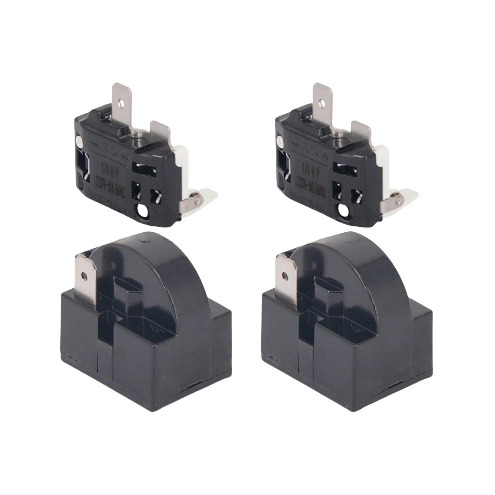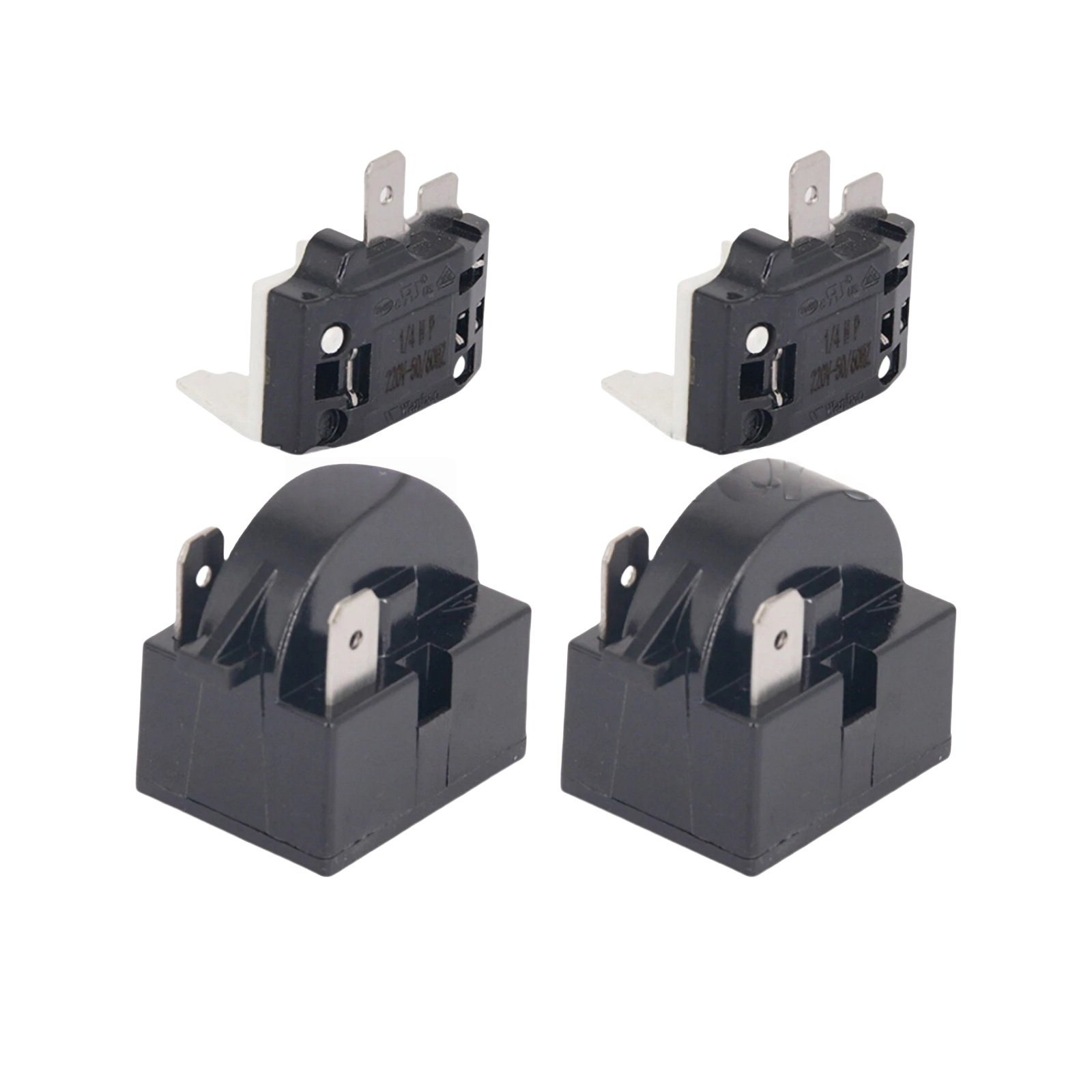 Specifications: Condition: 100% brand new and high quality Color: Black, White Quantity: 4pcs Starter Relay: Resistance: 15 ohm Pin Number: 2 Overload Protector: For: 1/4HP Refrigerator Compatible Power: 375W