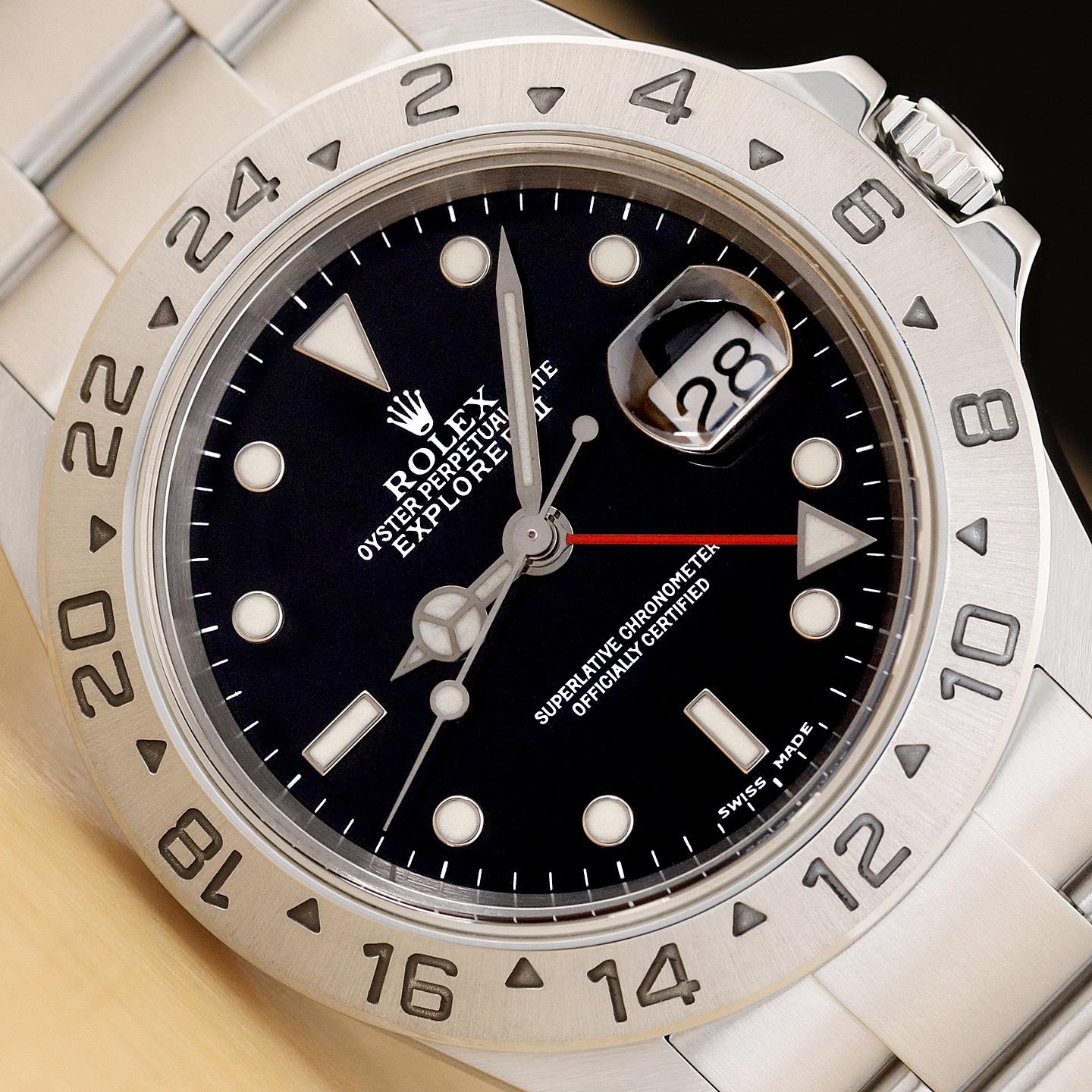 2004 PAPER ROLEX MENS EXPLORER II 16570T NO HOLES BLACK 40MM STEEL GMT WATCH