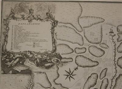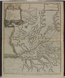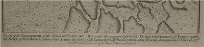 Description: Striking and highly detailed interesting 1745 James Basire's copper engraved map featuring a battle plan of the encampments of the Spanish army under Louis-Joseph, duke de Vendome & the Austrian Army under Count Guido Starhemberg in Prado Del Rey in Catalonia, Spain - during the Spanish War of Succession (1701-13).