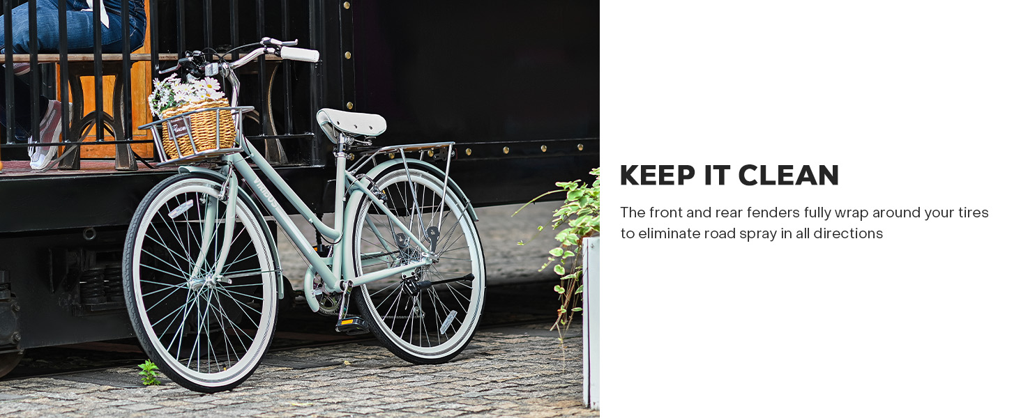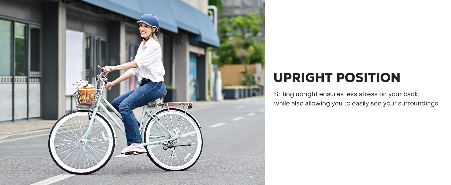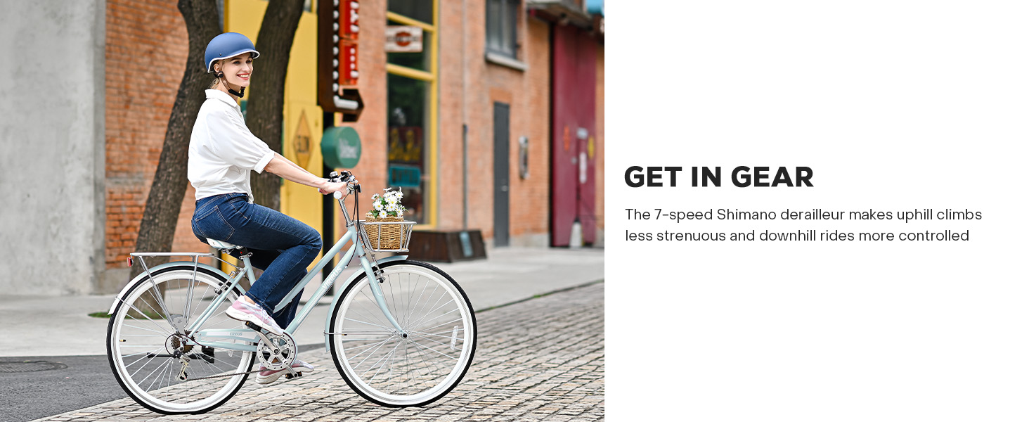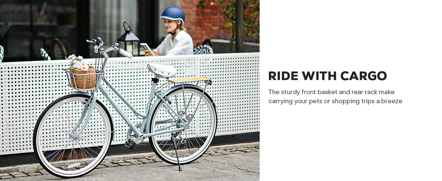 Dual V-Brakes: Cruise confidently through city streets with our city commuter bike for women, equipped with front and rear V-brakes for responsive and powerful braking in any weather condition.