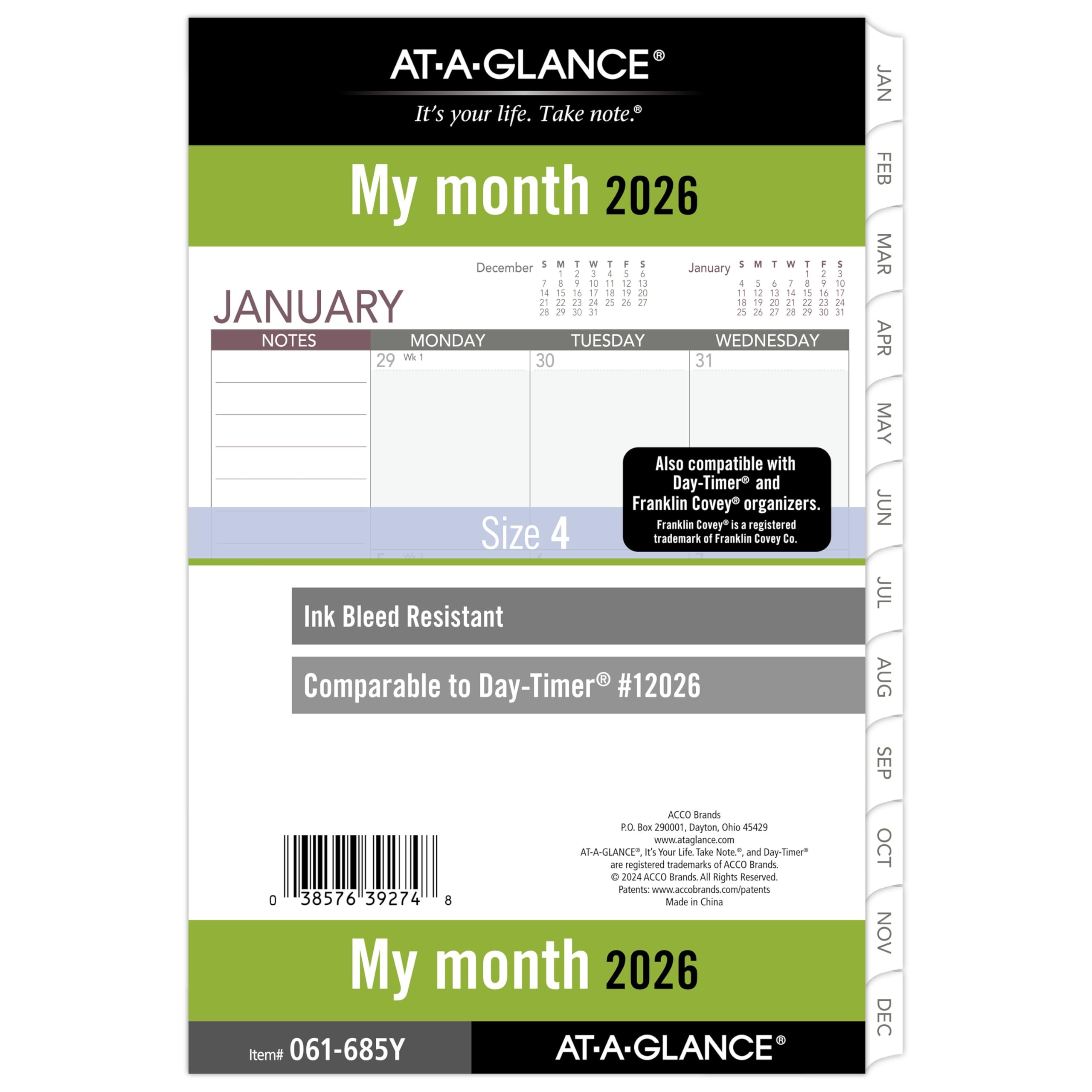 YEARLY PLANNING – Refill covers 12 months from January 2026 – December 2026 with Julian dates. Keep track of deadlines, special events and more with clear and simple organization.