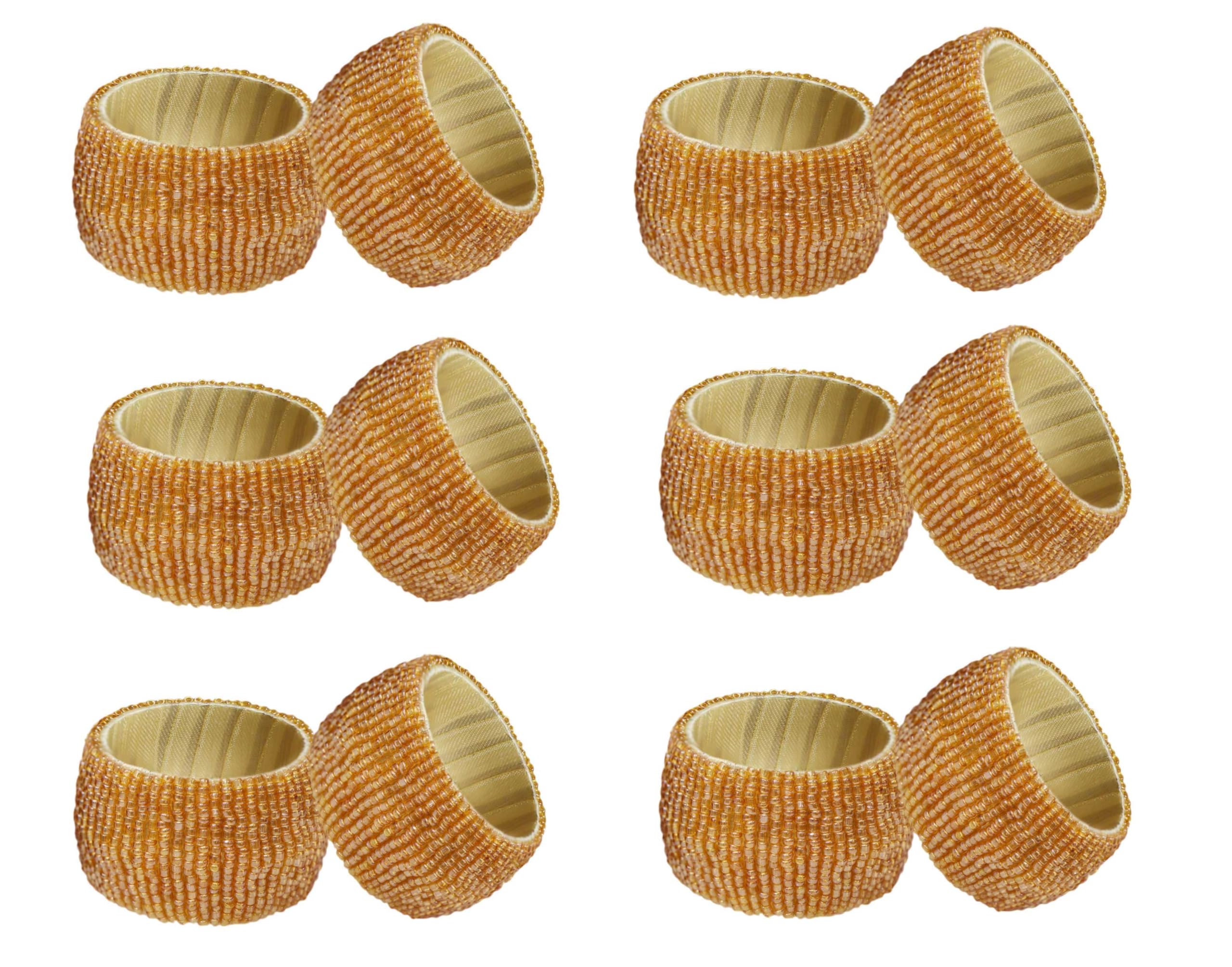 Elegant Beaded Design: Add a touch of luxury to your table setting with this set of 12 Glitz Beaded Champagne-colored napkin rings. Each Napkin ring measures 2 inches round. The intricate beadwork creates a shimmering accent for any occasion.