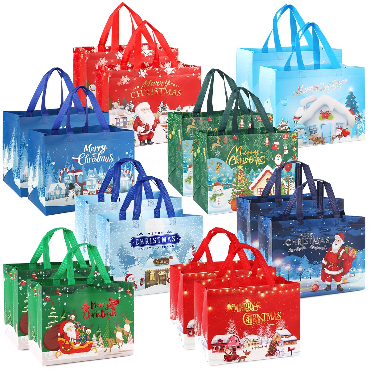 Christmas is approaching! Wish you a Merry Christmas and Happy New Year! ▶Outstanding Features: Christmas Holiday themed patterns and packages, will increase the festival atmosphere. Various styles, rich patterns and fresh Christmas colors, provide you with more choices. Made of non-woven, sturdy and durable enough for your daily use. Proper size can hold little items, such as small Christmas gifts, candies, cookies, chocolates, cards, etc. If you like, you can take it to go shopping or use it as gift wrapping for your friends or neighbors. ▶Specifications: -Material: Non-woven -Color: as shown in the picture -Size: 32.5×25×17cm/12.8"×9.8"×6.7" ▶Package Contents: 16 * Christmas Tote Bags With Handles ▶Warm Note: 1.Please allow slight size errors due to manual measurement. 2.Due to differences between monitor displays,actual color may vary slightly from image. 3.If you have any questions, please at any time, we will provide you with best solution