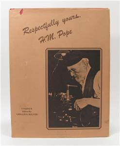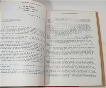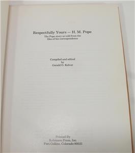 Here is Respectfully Yours, H.M. Pope. This was compiled and edited by Gerald O. Kelver. This interesting book mostly features correspondence between H.M. Pope and others, including A.O. Niedner, Dr. Franklin W. Mann, gun manufacturers, and more. The letters are all concerning shooting, manufacturing/testing parts, bullet loads/sizes, etc. These are interesting letters! Chapters include: Pope rifle barrels, George Schalk & William Hayes, Pope & the gain twist, directions for loading a Pope muzzle loading rifle, Pope lead melting pot, Pope & the machine rest, barrel bluing, the Ideal Reloading Tool Company, Resting a rifle, Pope and the Altiscope rifle, Notes from Harvey Donaldson, Register of Pope barrels and more! It has 226 pages; it measures 10 7/8" by 8 1/4". It is inscribed and signed by the author. Get this interesting book.