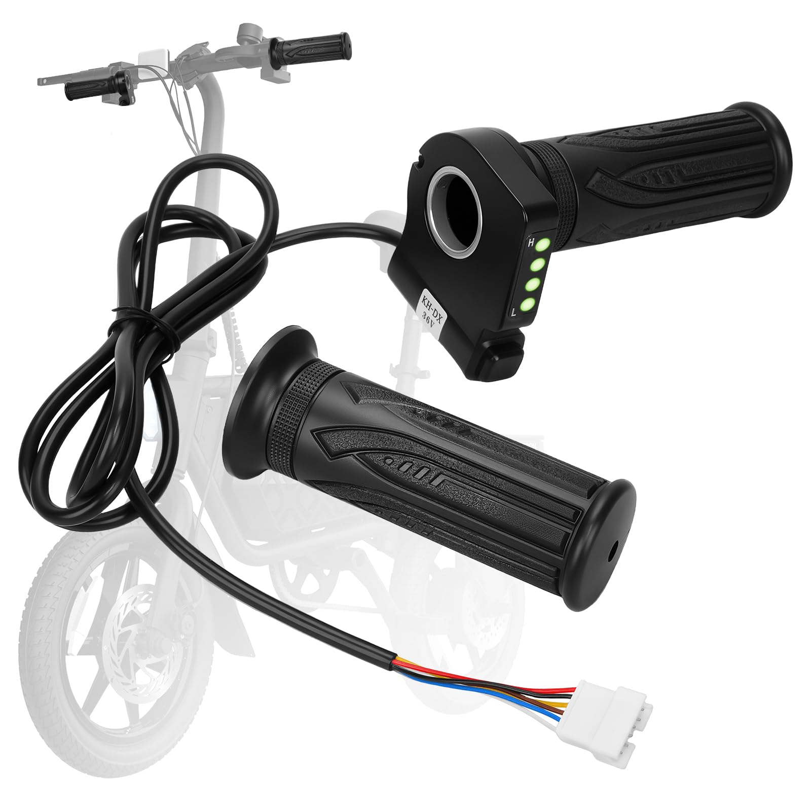 - The KH-DX 36V electric bike throttle,ergonomic handlebar design fits perfectly in the palm of your hand, featuring anti-slip and wear-resistant properties. It effectively reduces hand fatigue during riding, enabling precise and stable control on all road conditions.