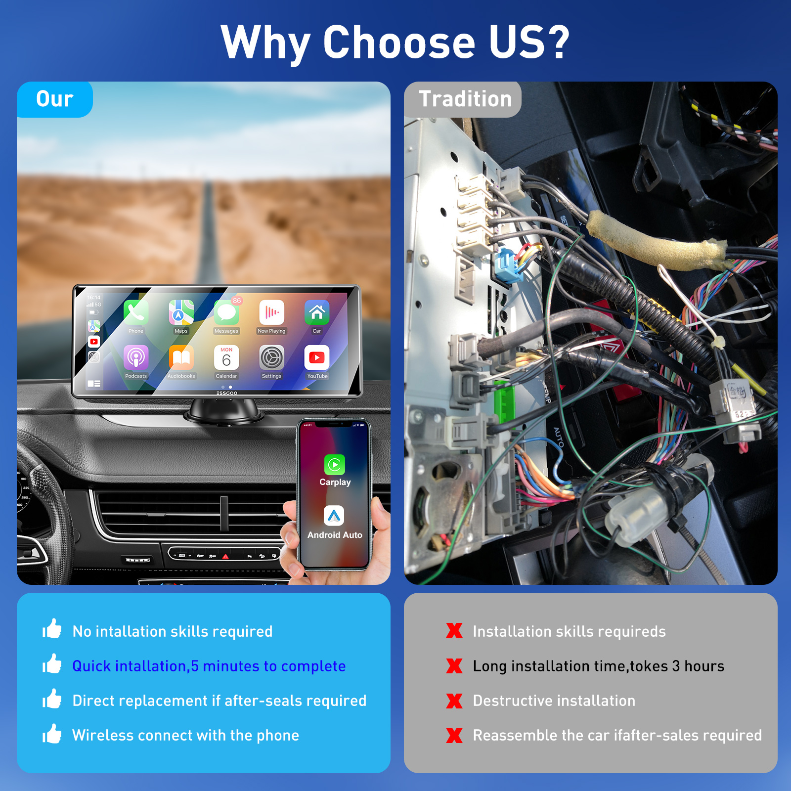 【Compatible with Apple Carplay and Android Auto】 This radio is compatible with Apple CarPlay and Android Auto, supports smart voice control like Siri/Google, just connect your smartphone, you can access map navigation, play music, make calls, send messages, etc. Keep your hands free and focus down the street.
