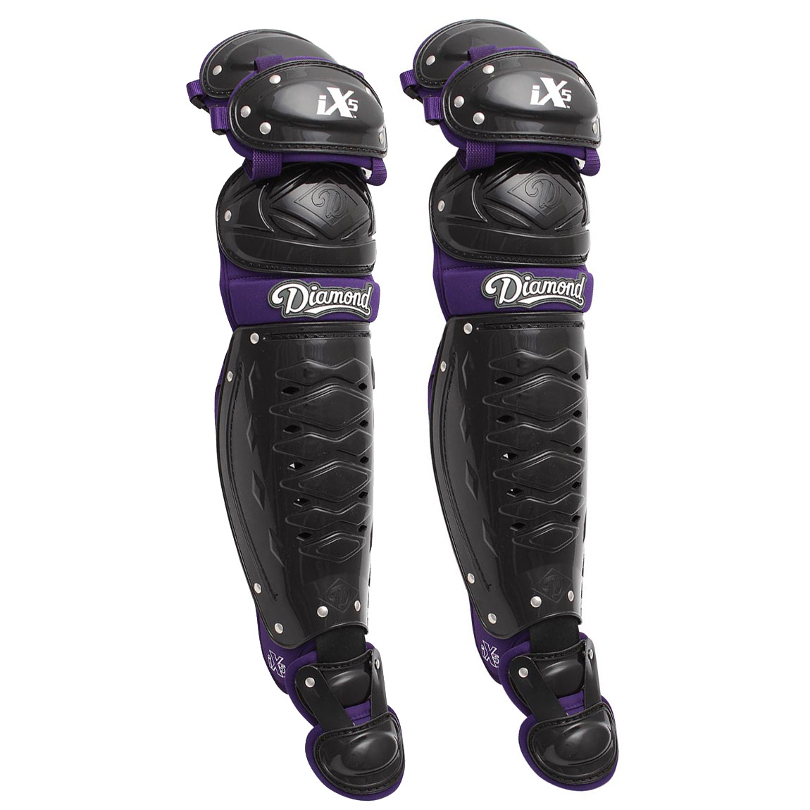 Gear-up with the iX5 Intermediate baseball catcher's leg guards from Diamond. Offers superior protection and comfort, plus a professional look.