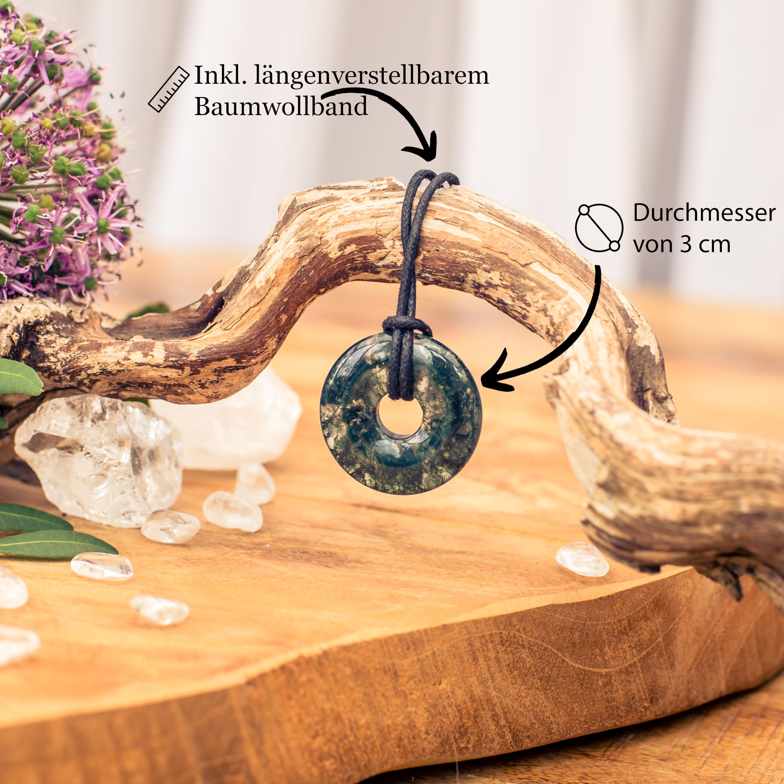 Edelstein Donut Ø 30 mm Baumwollband Edelsteinkarte Naturstein Anhänger