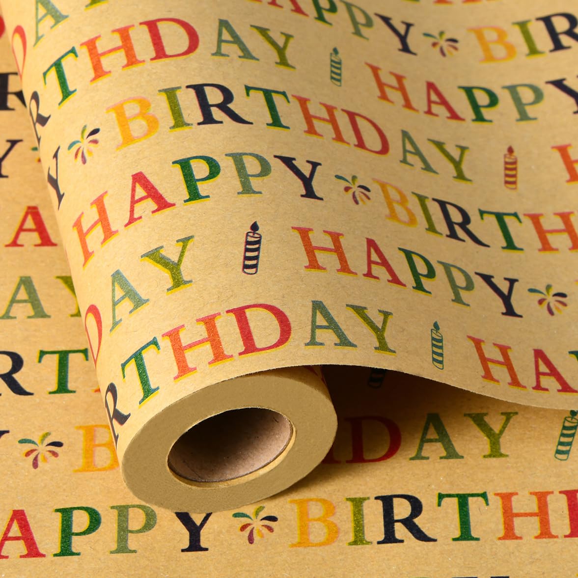 Sikiweiter Happy Birthday Wrapping Paper Roll - 17" x 33 ft - Kraft Paper with Colorful Happy Birthday Design (Kraft Birthday 2)