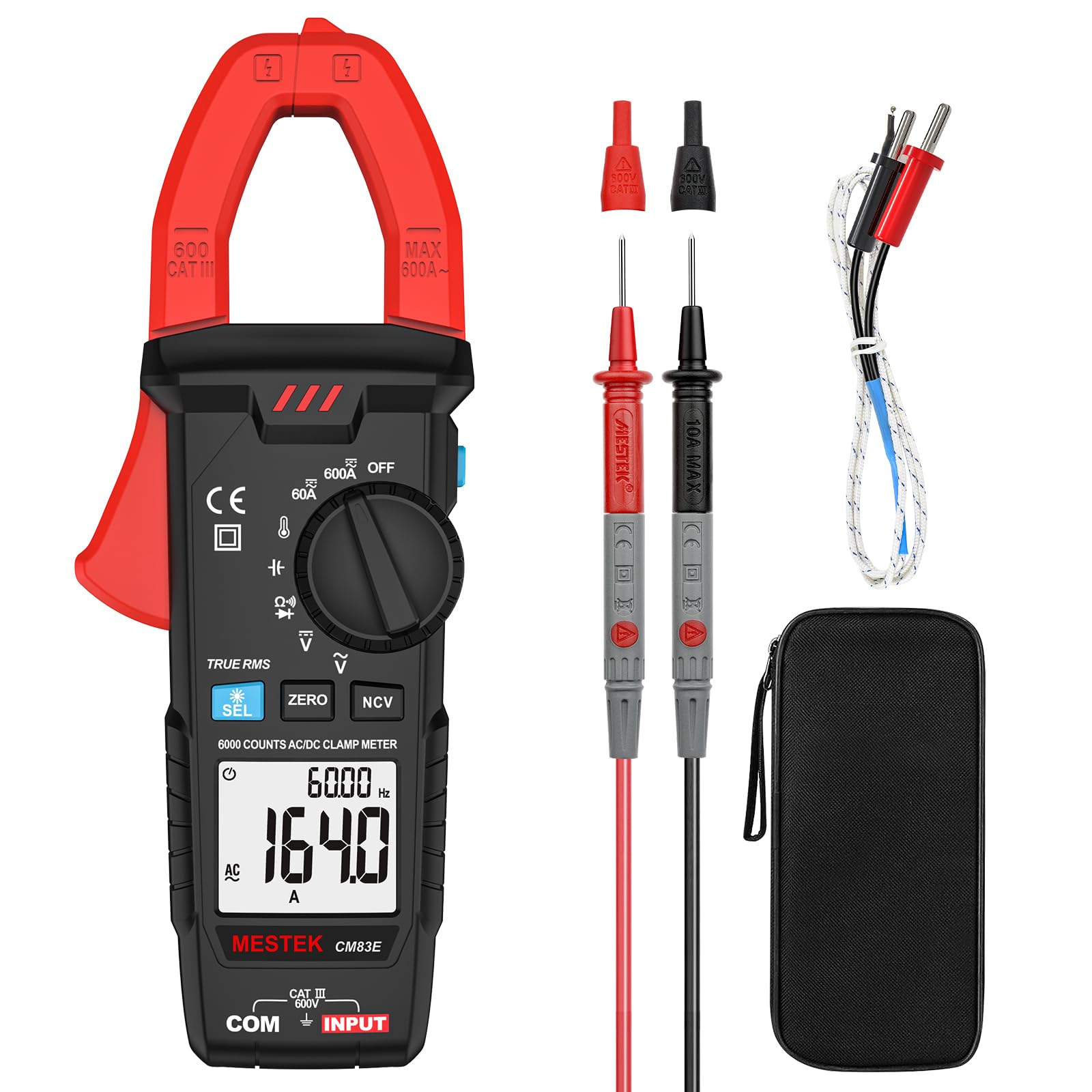 True-RMS 6000Counts Clamp Meter: CM83E clamp meter can accurately measure max 600A AC/DC Current, 600V AC/DC Voltage, Temperature, Resistance, Capacitance, Continuity, Diode; True RMS for accurate measurements on non-linear loads. A useful troubleshooting tool that will help you solve electrical problems in the car, industrial or at home quickly and safely