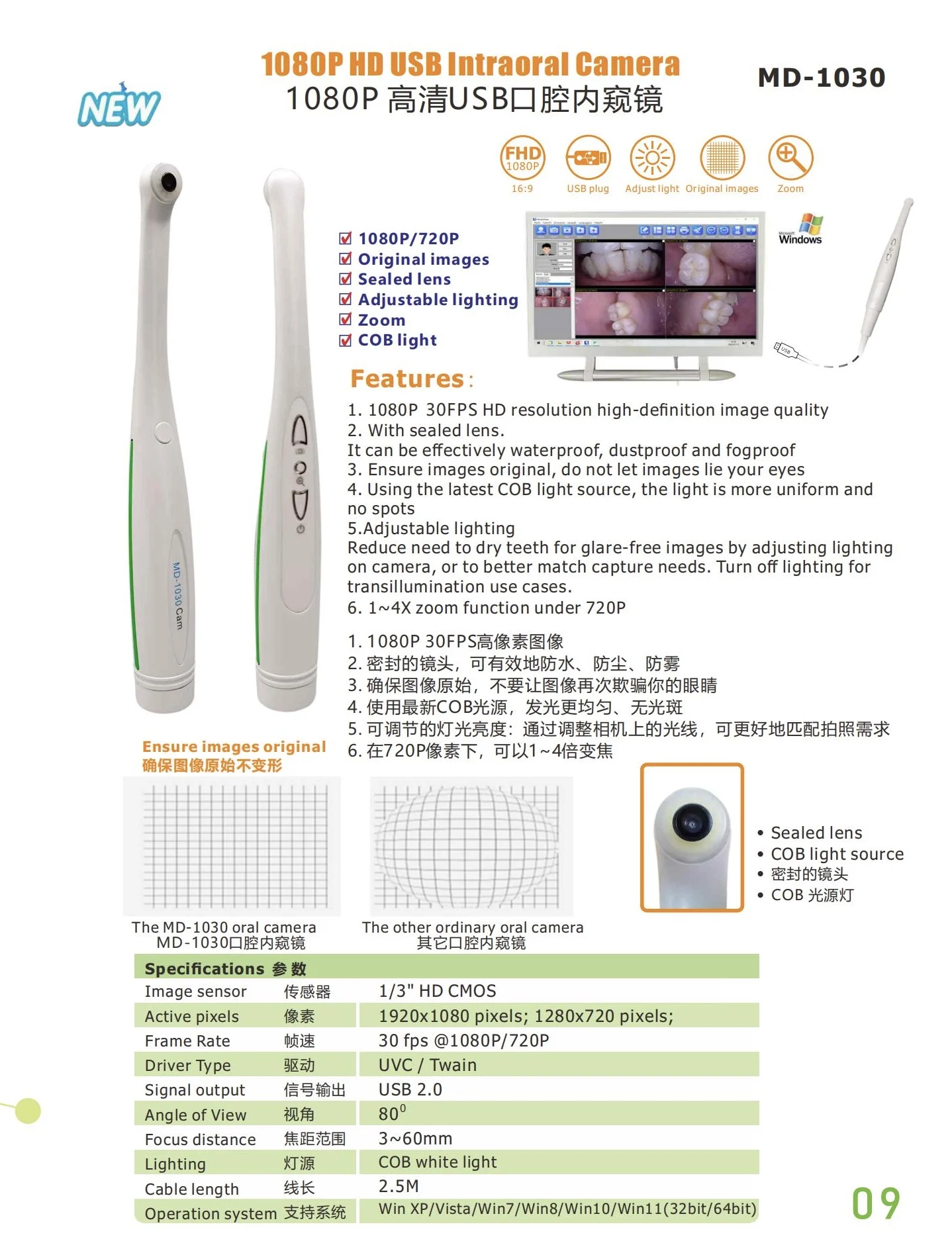 MD-1030 New 1080P 30FPS High-Definition USB Dental Intraoral Camera Viewer with TWAIN – Revolutionizing Dental Imaging