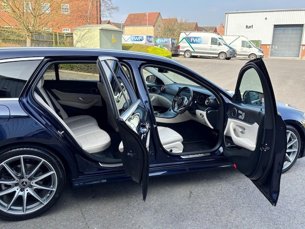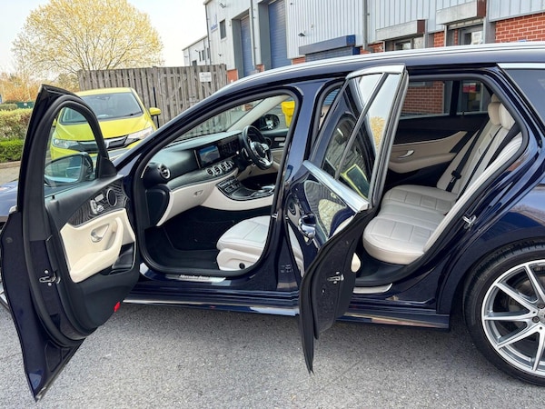 SP Cars are thrilled to offer this 2020 Mercedes-Benz E220d AMG Line Edition (Premium) G-Tronic+ 5dr Estate, presented in metallic Canvasite Blue. Just One private owner from new with full Mercedes service history at 14k, 29k, 46k, 63k, 77k and 88k on 30th Sept 2025. Hpi Clear. Mot until 28th Feb 2027. EURO 6 Emissions and ULEZ Compliant. All part exchanges considered. Check out our 5* reviews and a full walkaround video on our website . We are FCA regulated and can arrange competitive finance packages to suit your needs. We have the V5, complete handbook pack, 2 keys, locking wheel nut, warning triangle and 1st Aid kit. Viewing is by appointment only please. Please ring before travelling to avoid disappointment. The Impressive Spec Includes Widescreen Navigation Premium Package Blind Spot Assist Full Parchment Nappa Leather Seats - Heated Front Active Parking Assist with Reversing Camera 360 Surround Cameras Electric Seats With 3 Stage Memory Parking Package including Active Parking Assist with Front and Rear Parking Sensors Privacy Glass 19in Alloy Wheels - 10-Spoke Design Light Power Fold Door Mirrors DAB Digital Radio Tuner Apple Carplay/Android Audio KEYLESS-GO Starting Function Easy-Pack Automatic Powered Tailgate Dynamic Select with a Choice of Driving Modes - Comfort - ECO - Sport - Sport Plus - Individual Agility Control Suspension with Selective Damping System and Lowering by 15mm Cruise Control with Variable Speed Limiter COMAND Online System with Media Interface and Touchpad Steering Wheel - 3-Spoke AMG Multi-Function with Touch Control Buttons - Trimmed in Black Nappa Leather with Flattened Bottom Section Headlamps - LED High Performance with Integrated LED Daytime Running Lights Glove Compartment - Lockable - Air-Conditioned and Illuminated Audio 20 USB Automatic Child Seat Recognition Sensor ABS - Anti-Lock Braking System Adaptive Brake Lights Automatic Climate Control - Two-Zone Central Stowage Compartment with 12V Socket in Centre Console ESP - Electronic Stability Programme