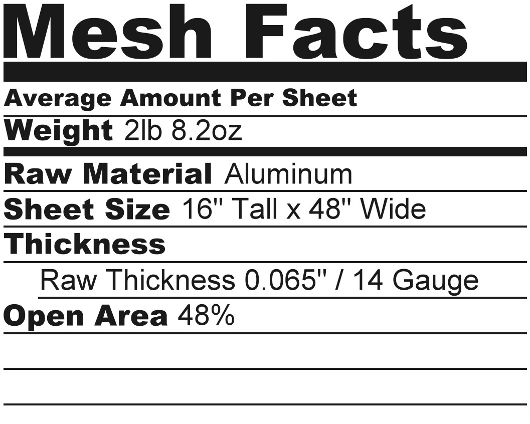 You are bidding on an Aluminum grill sheet that is 16 inches Tall and 48 inches Wide.