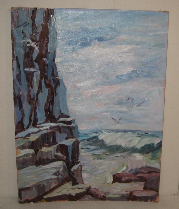 I PICKED THIS PAINTING UP TO COMPLIMENT THE 2 OTHER CHRISTINA BAUER PAINTINGS I RECENTLY PURCHASED OUT OF A ROCKPORT ESTATE. A LANDSCAPE, A STILL LIFE, AND NOW A SEASCAPE. OIL ON CANVASBOARD MEASURING 24 X 18 INCHES. SIGNED UPPER LEFT AND GUARANTEED TO BE BY CHRISTINA BAUER. IN EXCELLENT CONDITION WITH VIRTUALLY NO ISSUES. UNFRAMED. MAKE SURE YOU CHECK MY OTHER AUCTIONS FOR THE OTHER BAUER I AM ALSO SELLING. WIN BOTH AND SAVE. ADD ONLY $2.00 MORE IF YOU WIN BOTH.