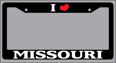 Black License Plate Frame "I Heart Missouri" Auto Accessory Novelty