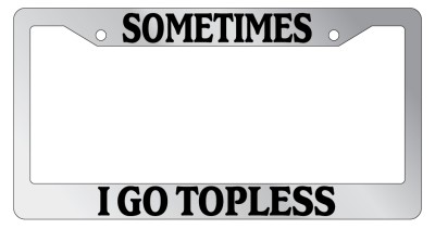 Sometimes I Go Topless Chrome license plate frame made from high impact ABS plastic, chrome plated, and covered with color vinyl printing. - This frame is designed to last. Steel chrome frames when they get scratched will rust and rot away.