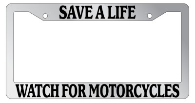 Save A Life Watch For Motorcycles Chrome license plate frame made from high impact ABS plastic, chrome plated, and covered with color vinyl printing. - This frame is designed to last. Steel chrome frames when they get scratched will rust and rot away.