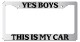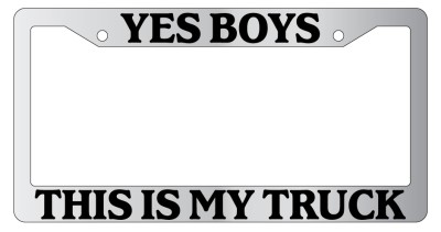 Yes Boys This Is My Truck Chrome license plate frame made from high impact ABS plastic, chrome plated, and covered with color vinyl printing. - This frame is designed to last. Steel chrome frames when they get scratched will rust and rot away.