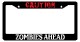 Black License Plate Frame Caution Zombies Ahead Red Auto Accessory Novelty