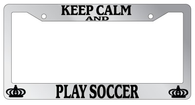 Keep Calm And Play Soccer Chrome license plate frame made from high impact ABS plastic, chrome plated, and covered with color vinyl printing. - This frame is designed to last. Steel chrome frames when they get scratched will rust and rot away.