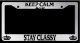 Keep Calm And Screw You Guys I'm Going Home Chrome license plate frame made from high impact ABS plastic, chrome plated, and covered with color vinyl printing. - This frame is designed to last. Steel chrome frames when they get scratched will rust and rot away.