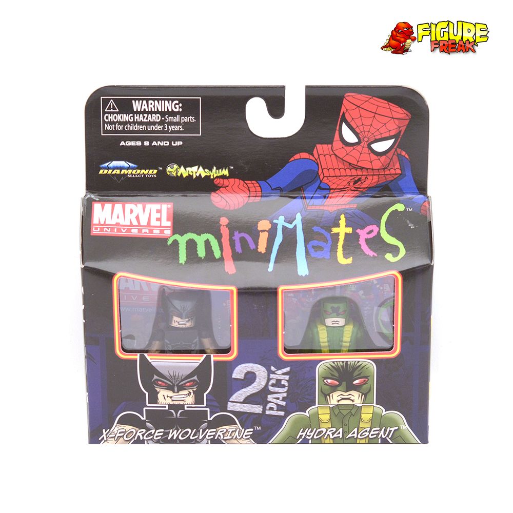 From Marvel Minimates Series 29... minty fresh sealed X-Force Wolverine & Hydra Agent 2-pack. A Diamond Select Release! Art Asylum Designs & Sculpts! The bestselling Marvel Minimates line continues with this assortment featuring characters from all across the Marvel Universe! This latest release will include the all-new Jim Lee Storm & Black Panther two-pack, the much-anticipated Moon Knight & Armored Daredevil two-pack, the frightening X-Force Wolverine & Hydra Agent two-pack plus the variant set with World War II Wolverine! Each Minimate stands two inches tall with 14 points of articulation and a variety of removable and interchangeable parts and accessories.