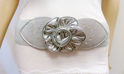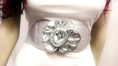 Fashionabl Women Silver Waist Belt W/ Stylish Zipper Flower Buckle Size S M L XL