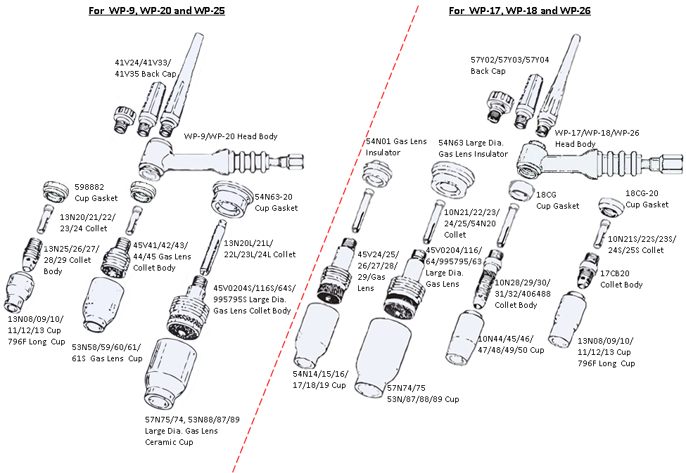 • For water cooled torch #18/#20 and air-cooled torch #26 series.