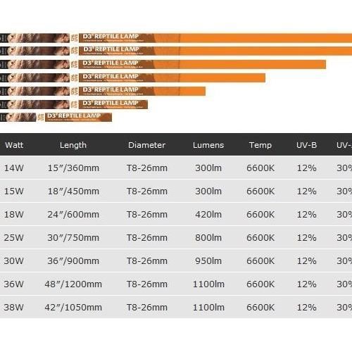 Available in various wattages and sizes, these lamps provide strong UVB and UVA proportions, promoting vitamin D3 synthesis and showcasing natural colours brilliantly.