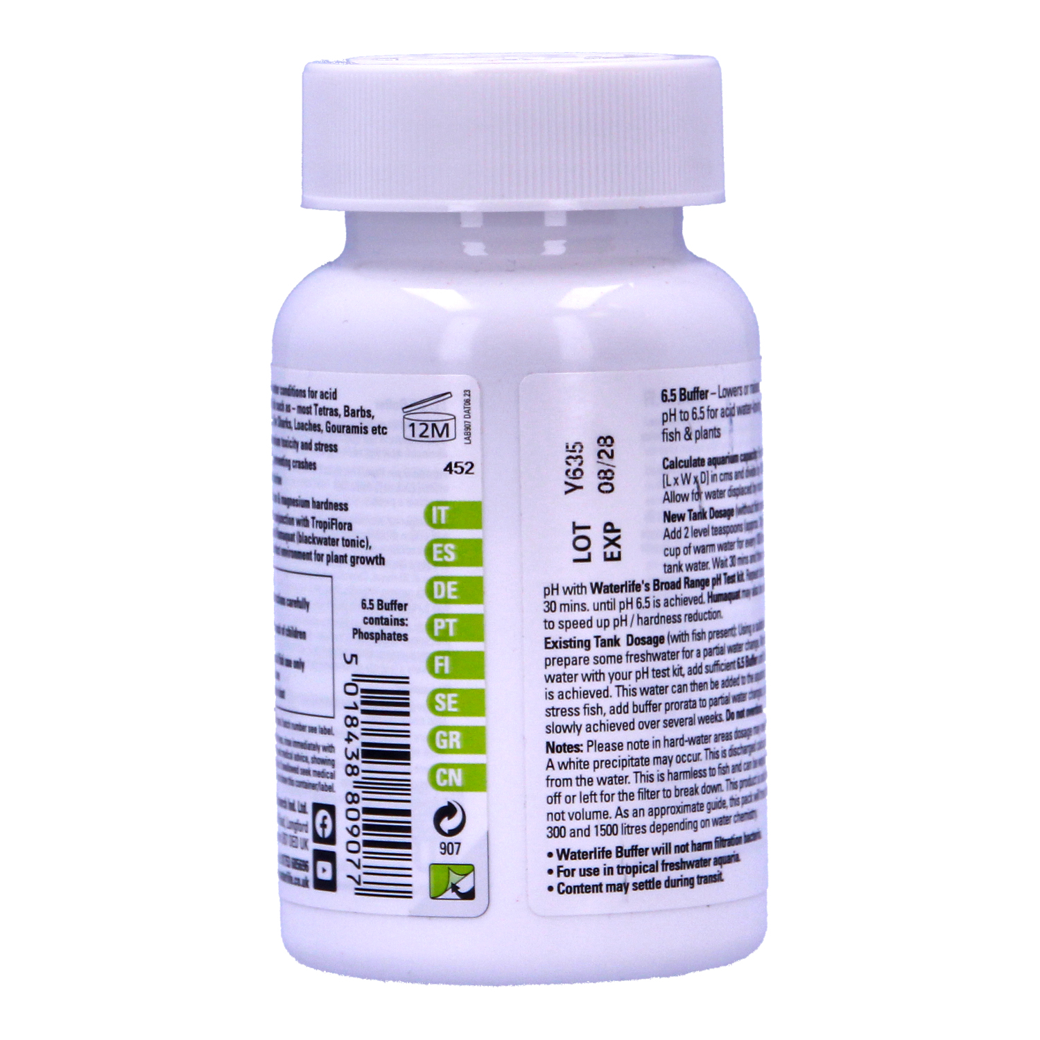 A true buffer, which softens and acidifies tap-water for acidophilic fishes and plants. Once the right amount of 6.5 Buffer has been added a pH of 6.5 will be achieved and maintained. This mechanism makes 6.5 Buffer a safe method of adjusting pH.