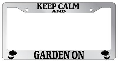 Keep Calm And Garden On Flower Chrome license plate frame made from high impact ABS plastic, chrome plated, and covered with color vinyl printing. - This frame is designed to last. Steel chrome frames when they get scratched will rust and rot away.