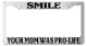 We do all kinds of different products. Check out our eBay store! We can do these frames for any design saying. We are showing 24 in this ad but we can do all of them. Just send us the name of the design you want. We can also do your custom saying. We also do custom products for businesses, organizations, high schools and fundrasiers. Email us with any questions so that we can create an auction for it!Please let us know how we do! We are here to make you the customer happy and would like to hear from you. If you leave us good feedback, we will be more than happy to leave you good feedback. Neutral feedback is the same as negative feedback to us, if a problem does occur we would like to do everything in our power to make it right and deserve the 5 star rating! Please do not be afraid to contact us so that we can ressolve any issues. Thanks!Please note that the frame shown above may not be legal in every state and is the responsibility of the buyer too be aware of their personal state law. We are not responsible for any resulting fines or consequences resulting from attaching our frames in a state in which they do not meet state requirements. We are willing to accommodate your needs by changing the design of the frame to accommodate your state regulations. Please contact us through the Ebay message system and we will work with you to fit the design on a frame that meets your states requirements. Included in our picture gallery are example of frames that meet different state requirements to give you an idea of what they look like.