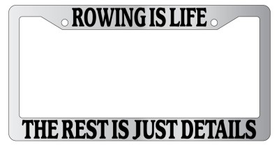 Rowing Is Life The Rest Is Just Details Chrome license plate frame made from high impact ABS plastic, chrome plated, and covered with color vinyl printing. - This frame is designed to last. Steel chrome frames when they get scratched will rust and rot away.
