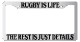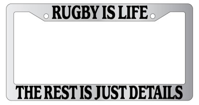 Rugby Is Life The Rest Is Just Details Chrome license plate frame made from high impact ABS plastic, chrome plated, and covered with color vinyl printing. - This frame is designed to last. Steel chrome frames when they get scratched will rust and rot away.