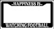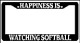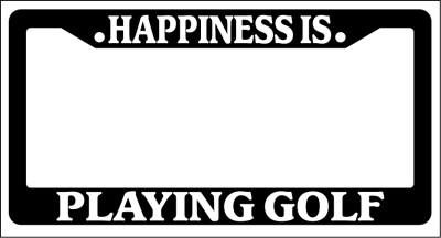 Happiness Is... Playing Golf Black license plate frame made from high impact ABS plastic, covered with color vinyl printing.