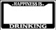Happiness Is... Riding A Horse Black license plate frame made from high impact ABS plastic, covered with color vinyl printing.
